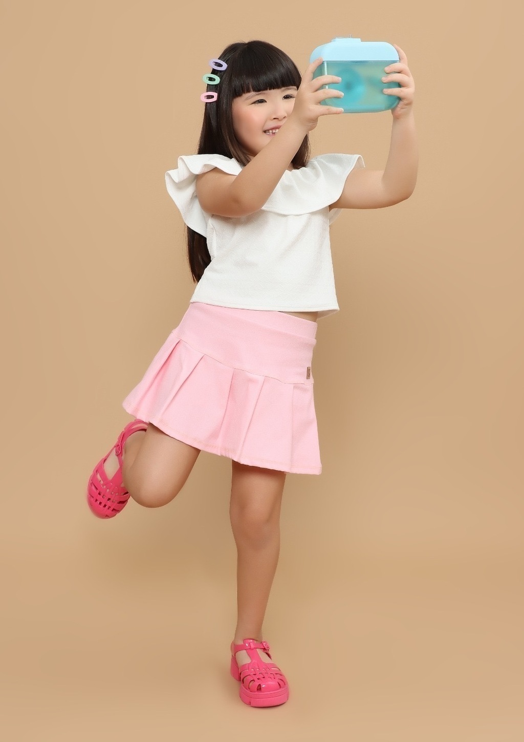 A Saia Plissada com Shorts por Baixo é a escolha perfeita para meninas que amam conforto e estilo! Feita em malha que imita o jeans, ela proporciona uma sensação agradável e leve para um dia de passeio e muita diversão.